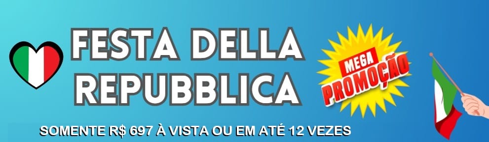 Esta é uma excelente oportunidade, aproveite o desconto agora mesmo e aprenda a falar italiano, para poder usufruir de todos os direitos de ser um cidadão italiano e reforçar o vínculo moral que temos com a nossa Itália. Conforme a sua inscrição logo abaixo, você pode pagar em boleto bancário ou ainda cartão de crédito em até 12 vezes! Não deixe escapar esta oportunidade e aproveite enquanto o desconto ainda está disponível!